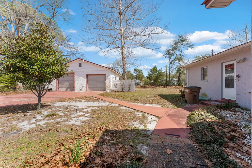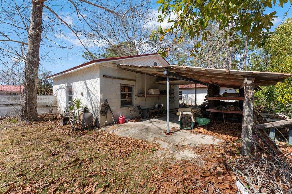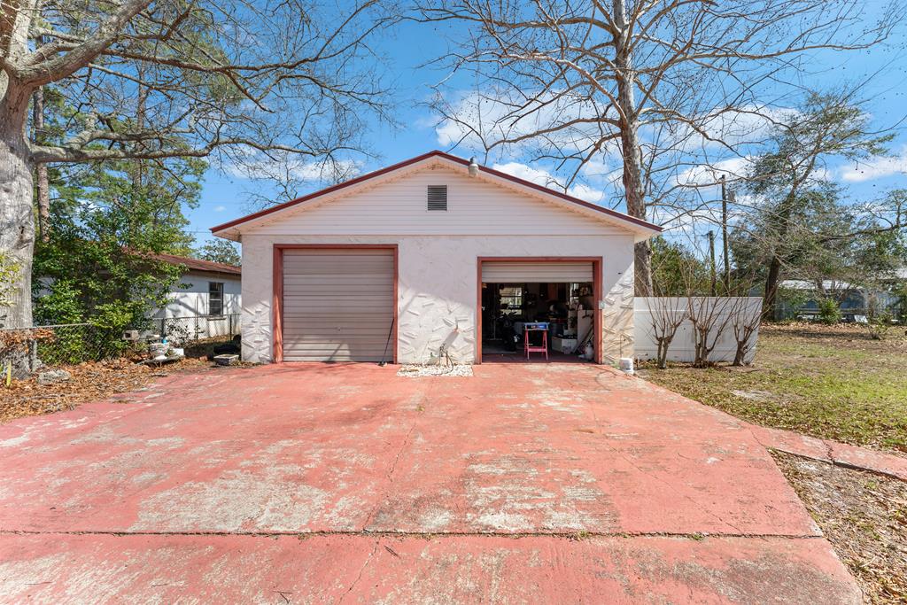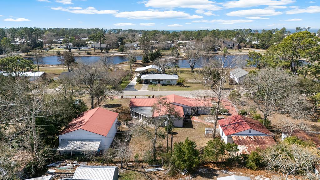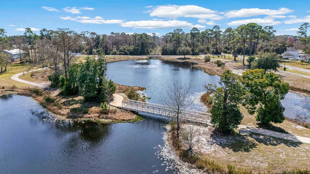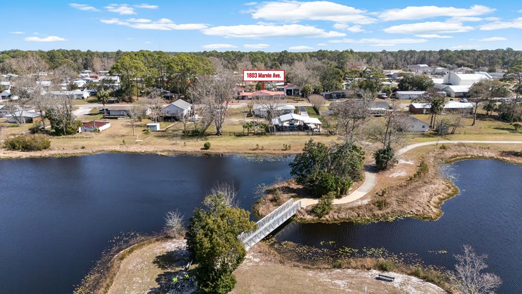 Situated on two lots 150x156 it is .54 ac. This ranch style house offers 3 large bedroom and 2 baths.. Formal living roon, TV room/den and Florida room. Guest rooms are in front of house and master is in back side and opens to Florida room. You have a view of the city pond and walking Trails, playground. The hosuse offers two out buildings with room for Class A 40+ foot RV and a smaller one or boat parking! In the other out building you can use for garage or workroom, . The back of both of thes has room for golf carts and kayaks. Golf Cart to town or the bay!